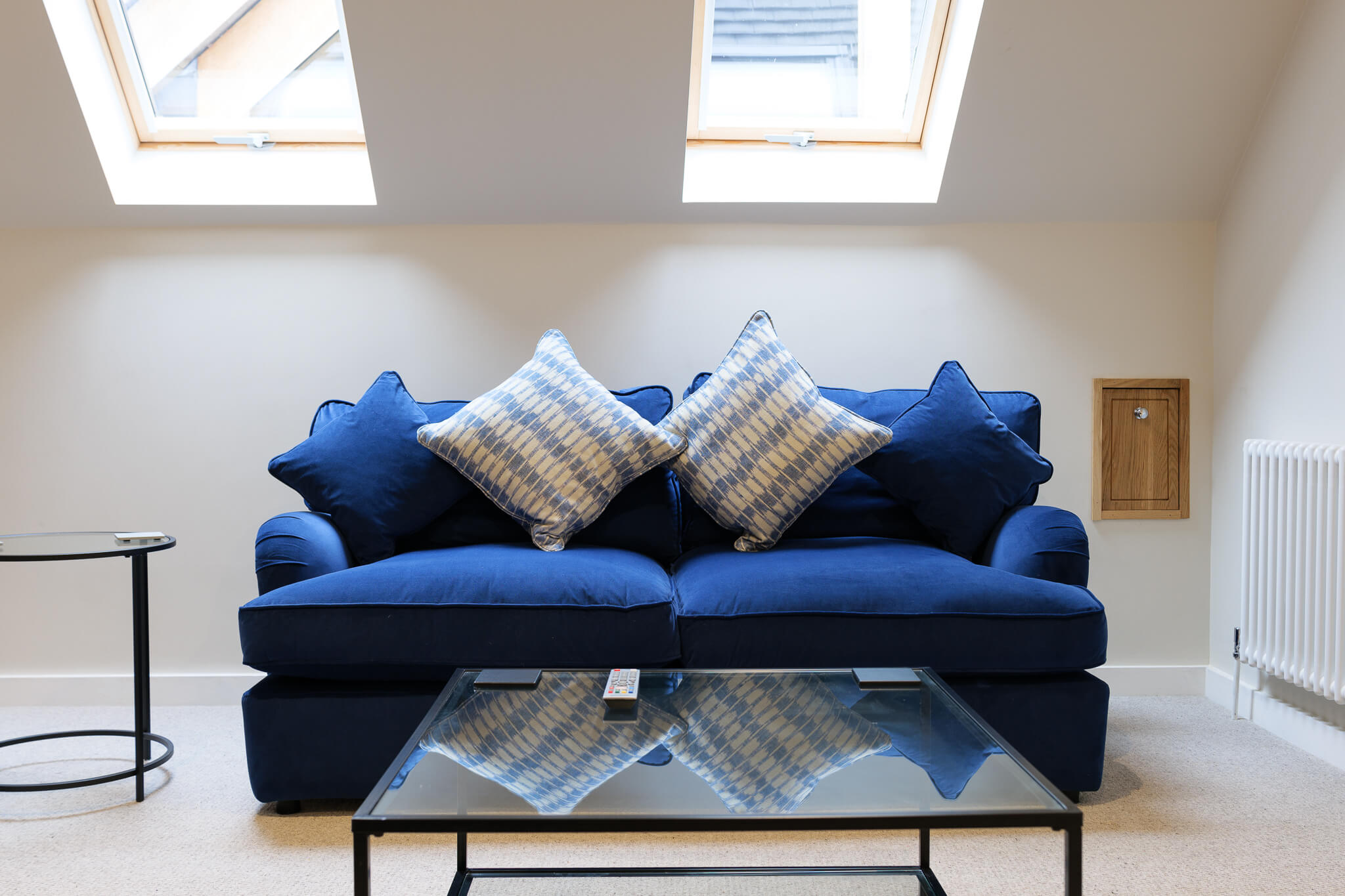This stunning studio-style apartment features a bright and spacious king-sized bedroom and an equally impressive double sofa bed. The living area is both airy and cosy, with a seamless flow into a compact kitchenette stocked with all the essentials. At the end of the apartment, a beautiful bathroom awaits, complete with a charming free-standing bath and a walk-in shower.