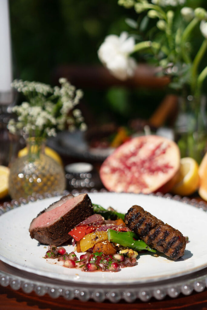 Rump of beef & braised shin, confit parsnip, spring greens, butternut fondant, jus